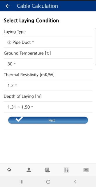 This app also helps to calculate rating current considering laying condition and recommends optimal cable and cable conductor size.