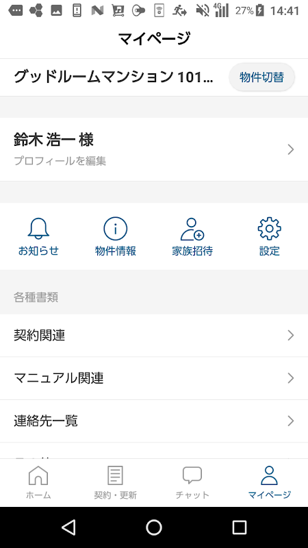 管理会社様からのお知らせや物件情報、契約書類もアプリ上で確認できます。