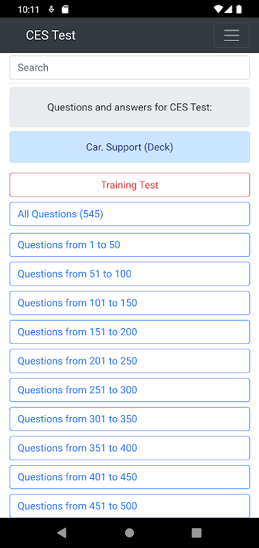 該應用程式包含 536 個問題,主題為:容器。支持(甲板)。該應用程式配備了方便的搜尋功能。