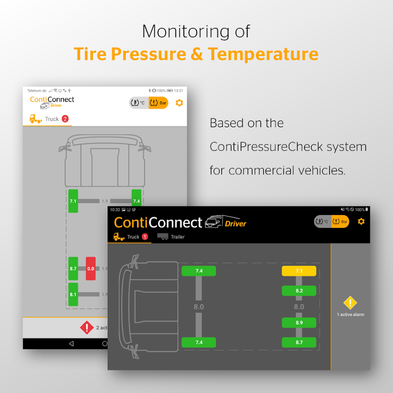 卡車,拖車和公共汽車的輪胎壓力和溫度監測