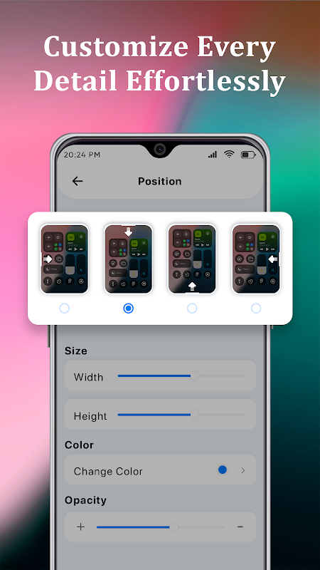 • 自訂外觀:調整控制中心的顏色、高度和寬度以符合您的風格。
