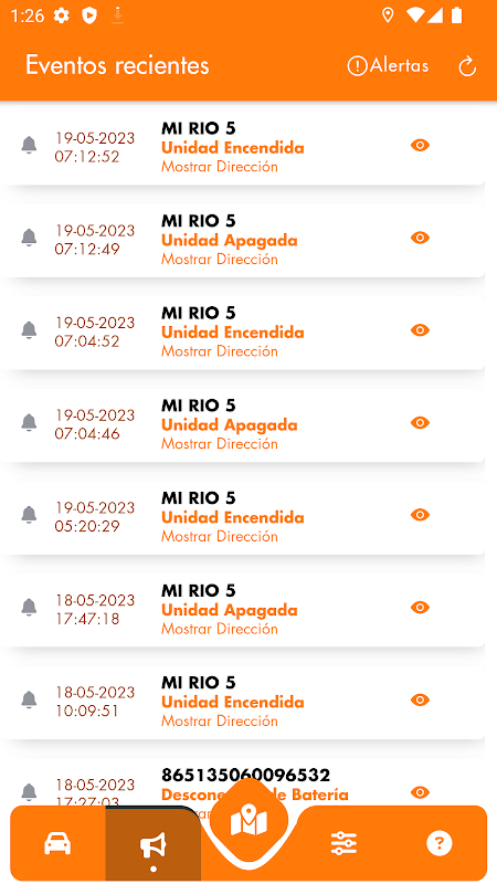 - Ver historial de recorrido, eventos, paradas