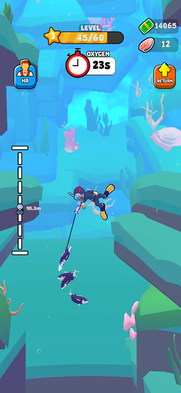 用你的魚叉在水下捕魚,然後將它們提供給在餐廳等你的顧客。