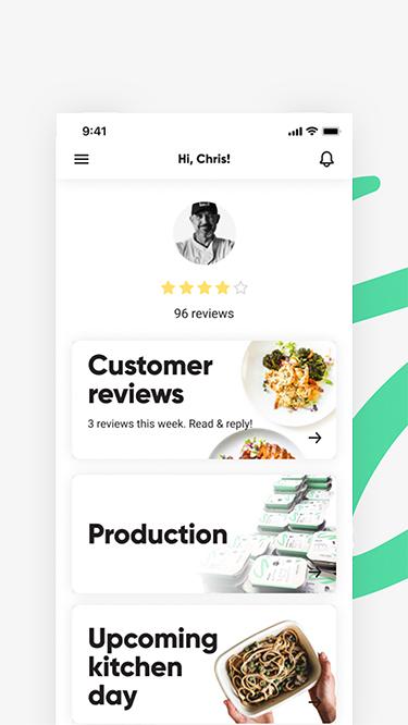 供 CookUnity 廚師查看生產數量和客戶評論。