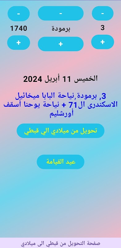科普特日曆小部件您可以將其放在主螢幕上以了解科普特日曆,您還可以打開該應用程序,獲取與任何科普特或公歷年份的複活慶祝活動相關的盛宴,以及將日期從公曆轉換為科普特日期,反之亦然。