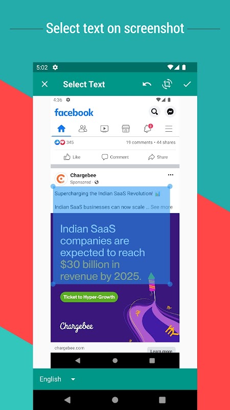 3. 在圖像上觸摸並拖動以選擇文本並選擇 OCR 語言,然後保存。