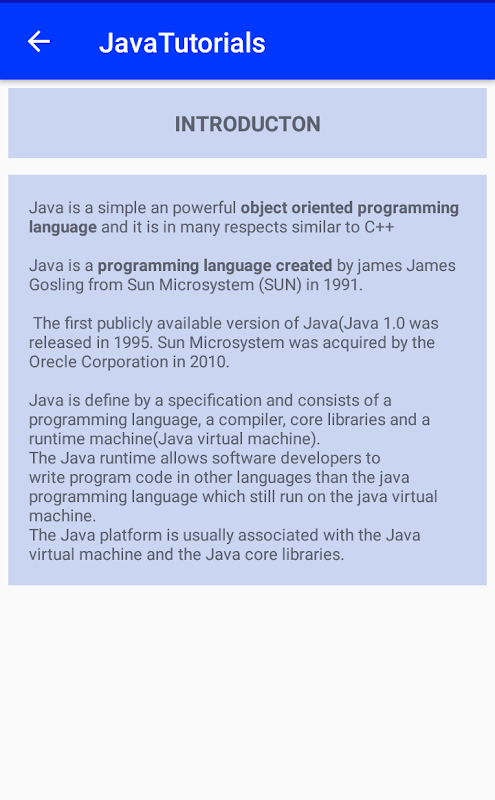 This app helps you refer to a greate to a collection java programs and theory on the go and helps you improve logical thinking of various problems related to Programming. Its an application to give source code and output try yourself for various java Programs as well as theory.