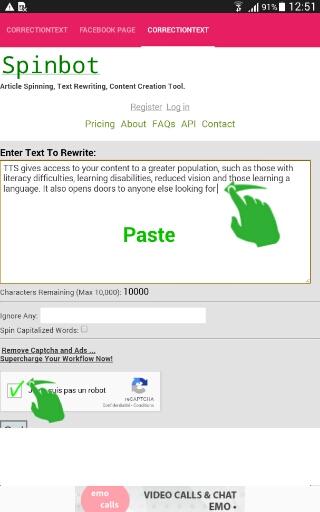 Spinbot is a free, automatic article spinner that will rewrite human readable text into additional, readable text. If you want to remove the ads and captcha requirement, you can also purchase a monthly or yearly subscription that will give you unlimited usage (through the website, not for the API).