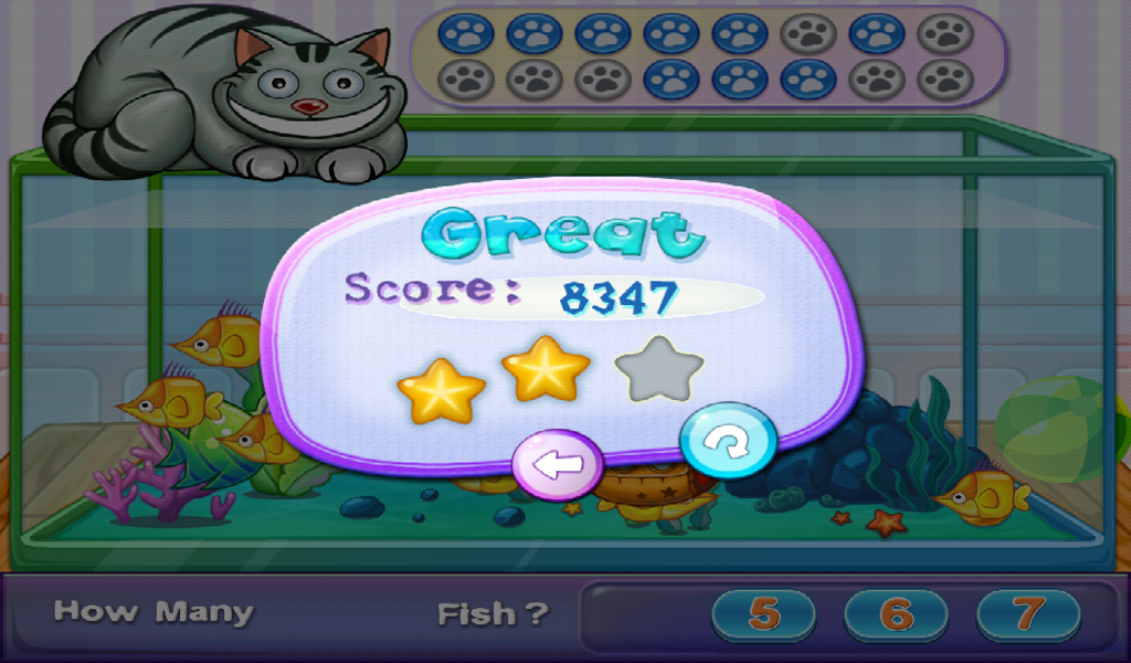 游戏的主要玩法为根据系统的要求,数出鱼缸里面条件相符的鱼的数量。