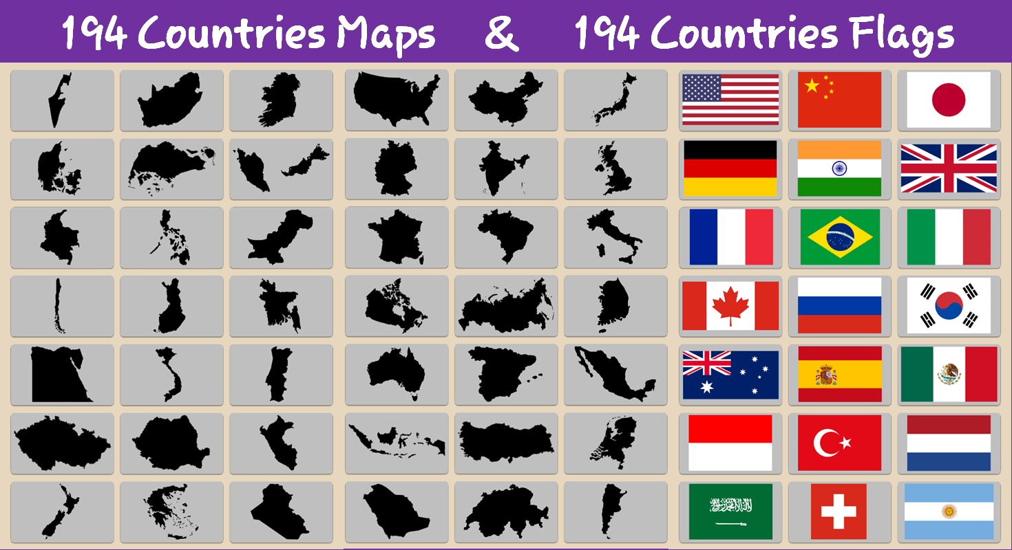 The purpose of this game is to find out the country name just by looking at their Flags and maps.