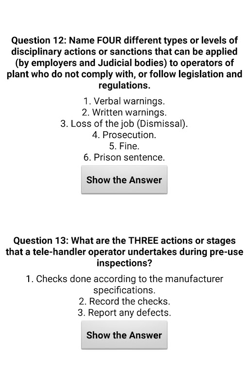 應用程序包含 CPCS A17 Telescopic Handler 口語理論測試的所有 72 個答案