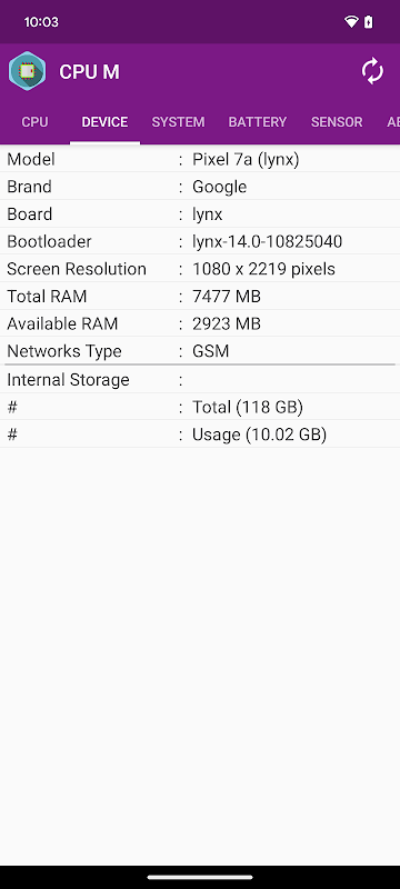 CPU-M 是一款應用程序,它將提供有關設備的多種信息,例如 CPU、系統、電池、感測器等。
