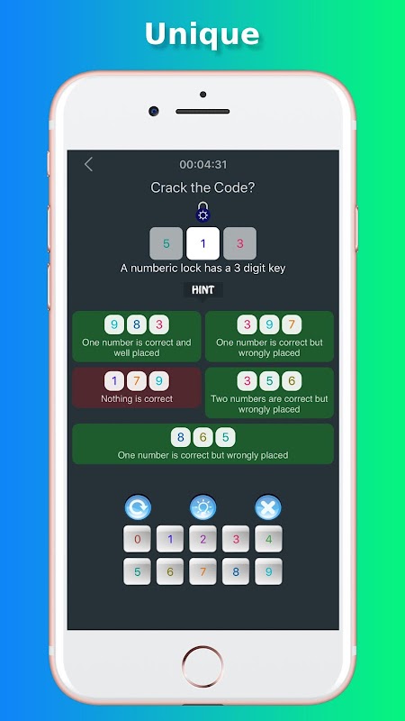 Crack The Code Pro 是一款無盡的益智遊戲,挑戰您從有限數量的謎語中找到 2 到 5 個正確數字來解鎖鑰匙並與您的朋友競爭