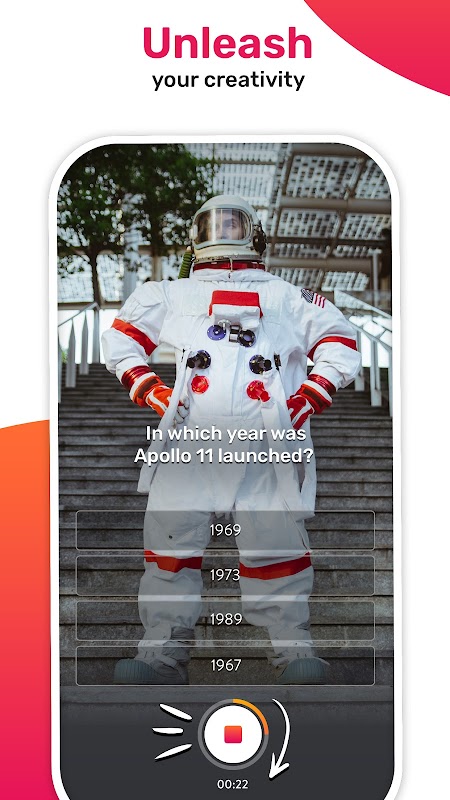 將您的個人風格添加到您的內容中!創建最有趣和最原始的瑣事視頻……並成為您最喜歡的話題的影響者!您可以實時錄製瑣事視頻或從您的圖片庫上傳。
