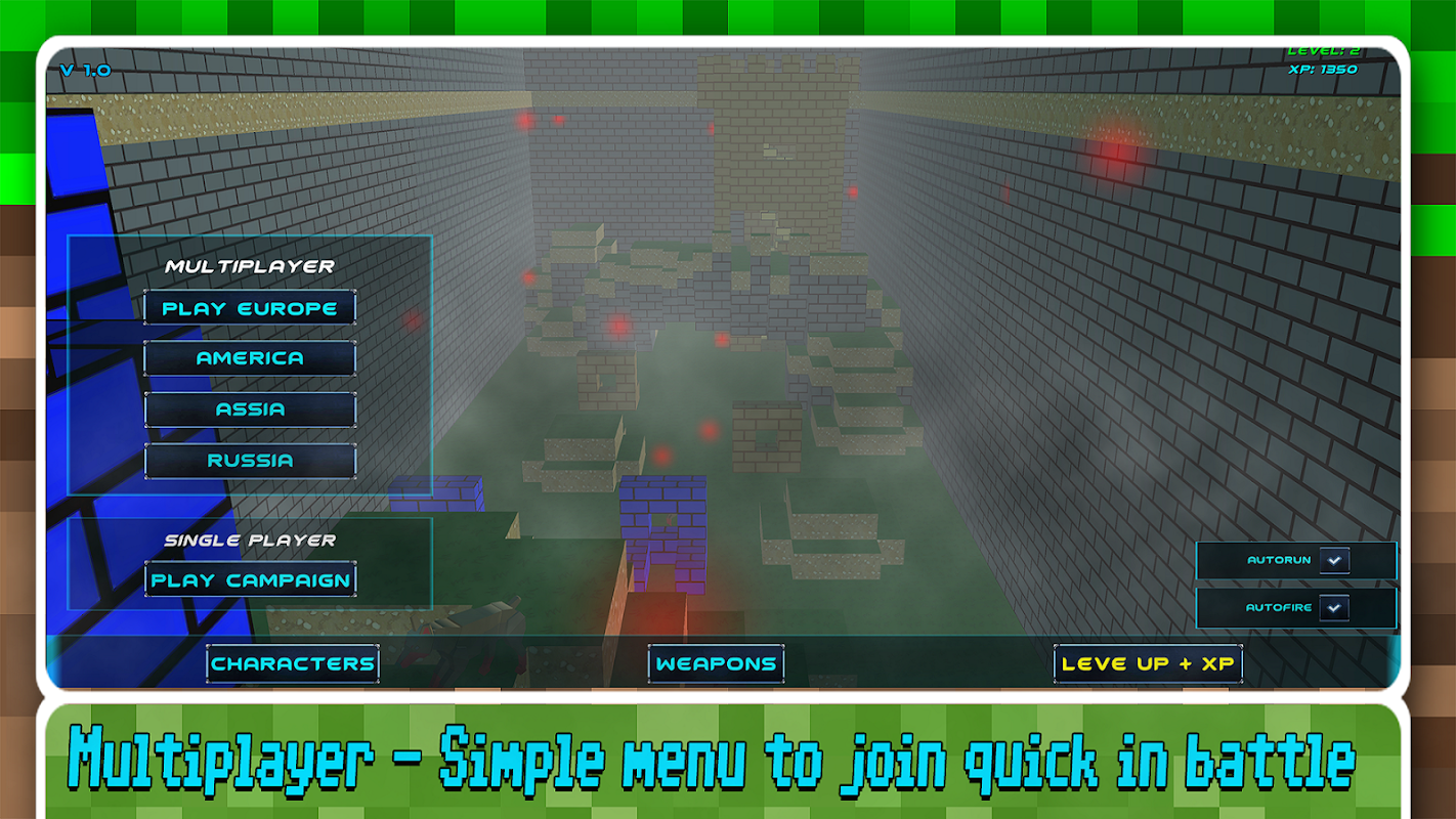 與多達 10 名其他玩家在線玩 Pixel Z Blaster 3D Battle Survival Fps,並體驗四種遊戲選項(TDM、DM、SURVIVAL、PLAYER VERSUS ZOMBIE),以及多達九種像素的槍支。