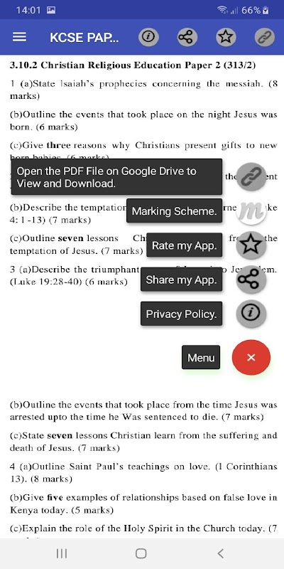 This mobile application features C.R.E KCSE Past papers with their Answers.