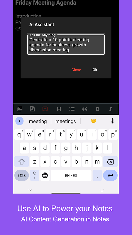 您甚至可以使用AI助理建立筆記,讓筆記變得更輕鬆。