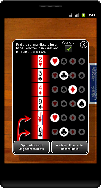紙牌經典也有一個“放棄分析”分紅功能,可以幫助您在最佳丟棄決定發揮給予了特殊的紙牌的手。分析器顯示您的最小值,最大值,和用於沿與所有可能的翻轉卡的結果進行了深入的統計分析每個置換平均得分。