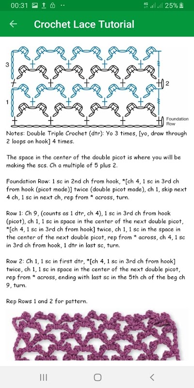 這個應用程序包含許多如何製作鉤針花邊指令,這些指令會給你很多靈感,讓你在家中創造你想要的鉤針花邊設計,這個應用程序中提供的一些鉤針花邊教程是: