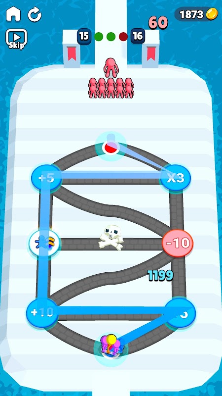 通過各種障礙和乘法門繪製最有效的路徑,帶領您的火柴人取得勝利