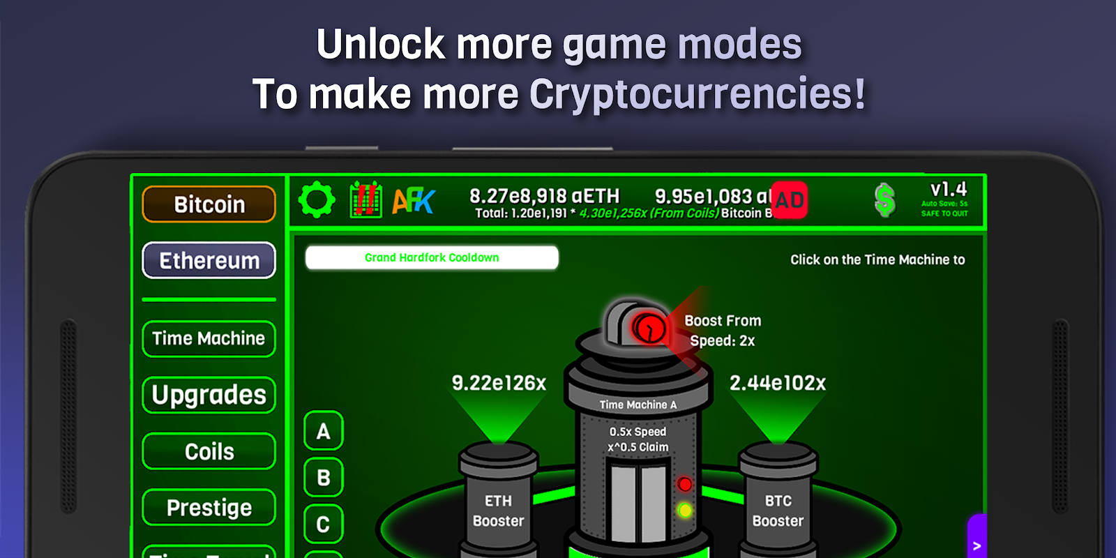製作盡可能多的假以太坊和比特幣!購買大量的升級,聲望並解鎖CryptoClickers中的許多功能!