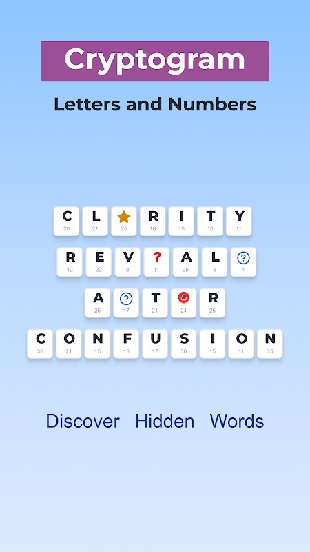Cryptogram Code Letter Puzzle 是一款引人入勝且考驗大腦的密碼破解遊戲。該應用程式旨在挑戰您的思維並增強您的邏輯技能。您將隨時隨地解讀各種名言並學習新單字。透過解決基於數字的謎題來解碼隱藏的訊息。每個關卡中的每個字母都由一個數字表示,因此匹配字母和數字即可在遊戲中前進。