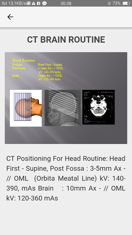 CT POSITIONING, ANDROID APPLICATIONS FOR RADIOLOGY CT POSITIONING, Very Useful For Handbook And Handbook During Work And Study, CT POSITIONING Consists Of Ct Brain, Nasopharynx, Sinus Paranasal, Thorax, Mastoid, Abdomen, Extremity, Cta And Ct Cardiac