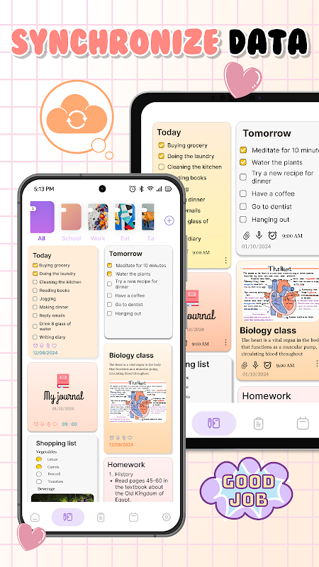 記事本必須在您的手機上。可愛的筆記可幫助您安排、組織和簡化您的生活、工作或家務。它還結合了日曆、待辦事項列表和天氣等功能,可幫助您在一個地方進行管理。