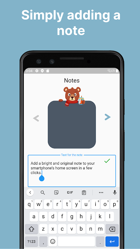 Cute Notes Widget & To Do List 方便而現代,是一款多功能筆記本應用程序,專為所有智能手機和平板電腦用戶的便利性和生產力而設計。無論您需要記下簡短筆記、創建待辦事項列表還是管理日常任務,此應用程序都能滿足您的需求。只需點擊幾下,您就可以輕鬆地在設備屏幕上記錄您的食譜、提醒、日常任務和個人想法。將重要的筆記放在您的面前作為提醒,例如為您的女朋友購買禮物或為自己設定一個願望。