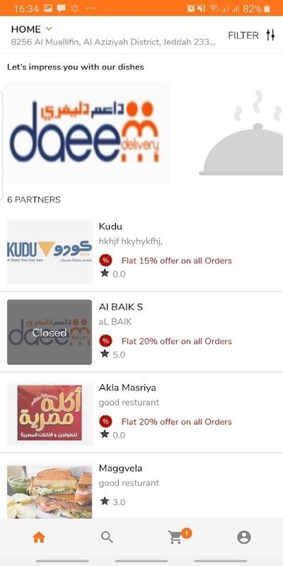 Daeem Delivery lets customer place food delivery order.
