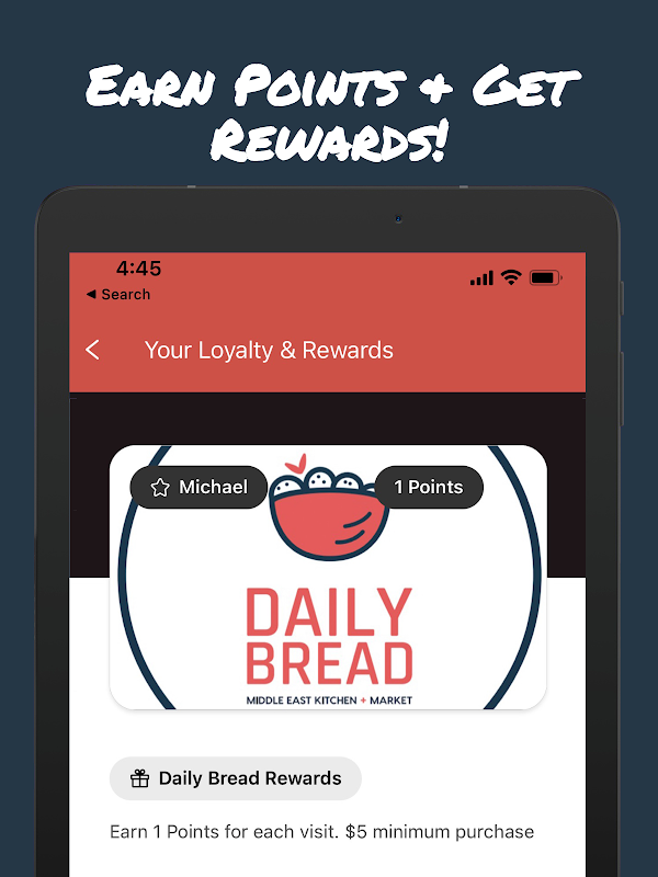 Daily Bread 應用程序是一種在店內付款或免排隊提前訂購的便捷方式。獎勵是內置的,因此您將收集星星並開始在每次購買時賺取免費食物和飲料。