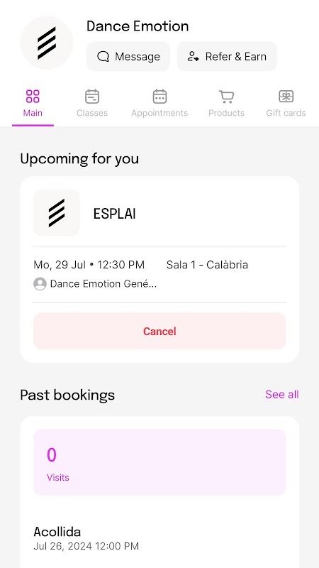 Dance Emotion 應用程式可讓您預約面對面課程