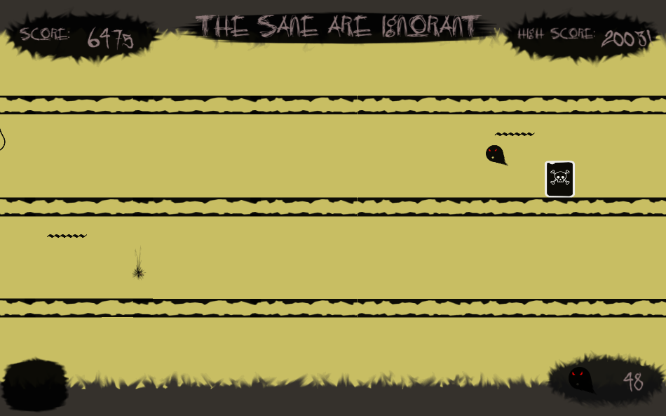 Guide him in the endless, sinister realm of the beyond while avoiding obstacles. How far into the world can you reach??