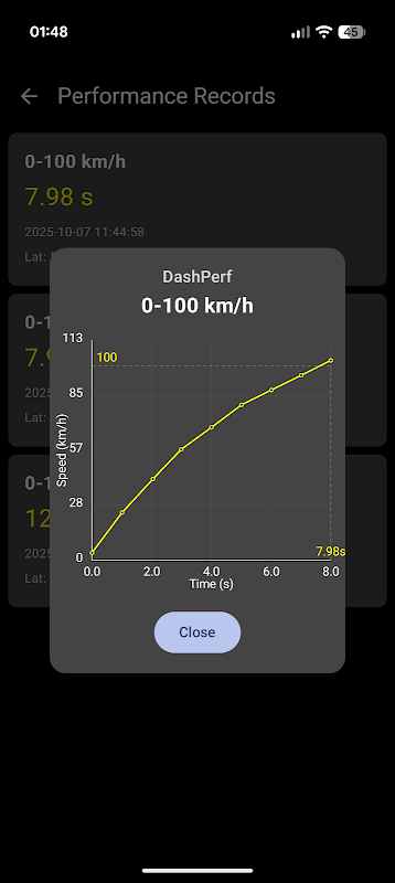 • 保存與比較:所有性能記錄都會被保存,方便您追蹤車輛性能。