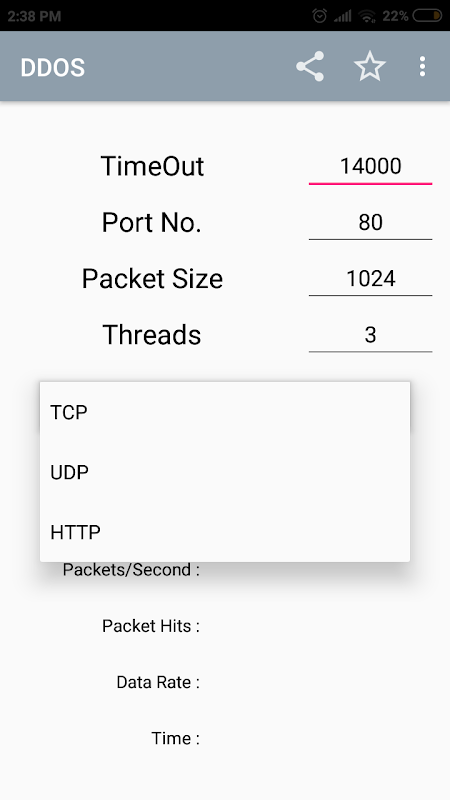 • This Application is used to test dos on your website. Multiple devices acting simultaneously using this application may simulate a DDoS. It uses 3 methods in order to generate packets.