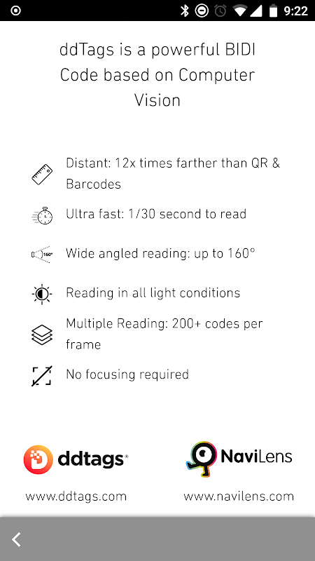 Los códigos ddTags suponen un nuevo concepto en el mundo de los marcadores bidimensionales, ya que a diferencia de otros códigos ya existentes como los códigos QR o los tradicionales códigos de barras, las etiquetas ddTags pueden ser leídas hasta 12 veces más lejos que un código QR de tamaño equivalente.