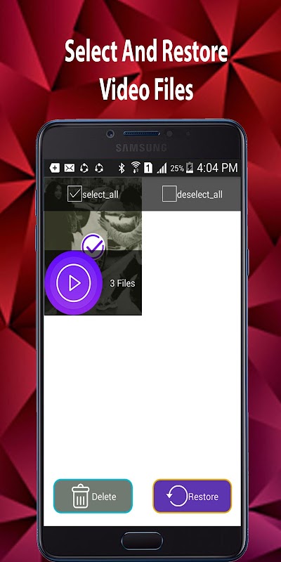 Delete Video Recovery is recovered into your android mobile and you can easily restore deleted videos on your android phone and restore deleted video files in few seconds. Video recovery app will work without rooting phones, therefore recover deleted videos without any root access.