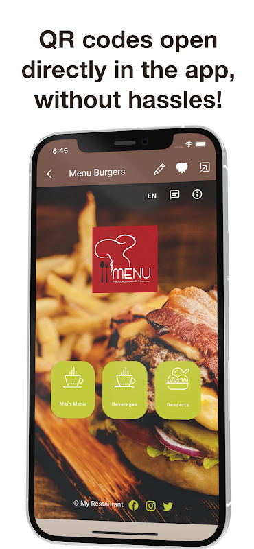 掃一掃即可一鍵打開餐廳、酒店和咖啡館的二維碼菜單!我們的應用程序。將立即輕鬆打開所有類型的二維碼。您無需手動下載文件或等待外部瀏覽器打開!