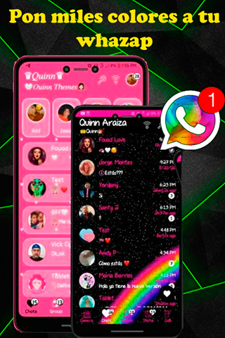 *Vas a poder cambiar los temas de tu chats como más te gusten los cuales son fondo de pantalla, color de textos para cada conversación, nombres de contacto ,etc.