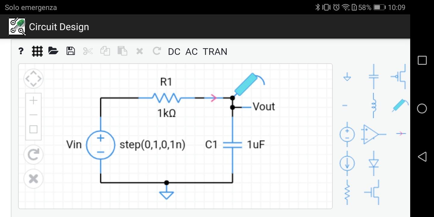 - 從菜單中選擇 DC、AC 或 TRAN 來模擬電路
