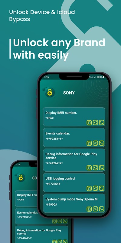 檢查 Imei 和解鎖設備是這個應用程序的主要功能。只需幾分鐘即可免費解鎖所有類型的手機。秘密代碼和設備解鎖應用程序可以免費檢查 IMEI 和解鎖 IMEI 和設備解鎖,它還為 Android 設備提供所有特殊代碼。