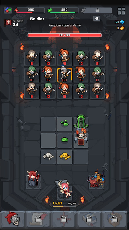 在惡魔城堡聚集骷髏士兵,將他們融合成更強大的戰士,消滅入侵的人類。餵她牛奶來培育和增強她的力量。