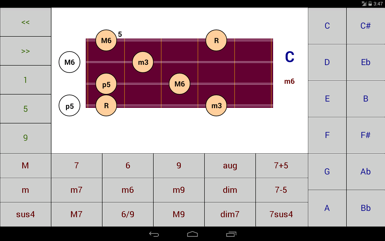 新的曼陀林和弦模式為Android 4.0.3或更新。 648和弦模式。