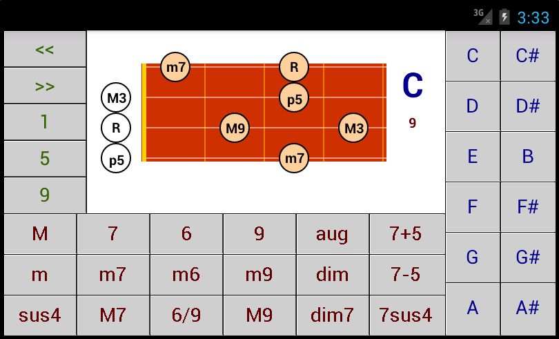 Ukelele和弦模式為Android 4.0.3或更高版本 12x18x3 = 648和弦模式