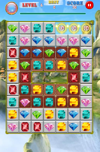 Swipe Diamond Dash and Splash them to reach the required score and get the stars