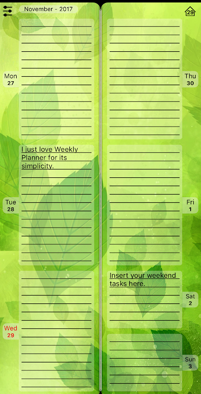 每週計劃 - 你平常的紙日記成了一名電子應用!