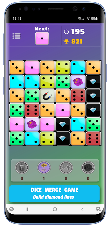 骰子益智遊戲,您可以在其中合併骰子以完成鑽石行和列。