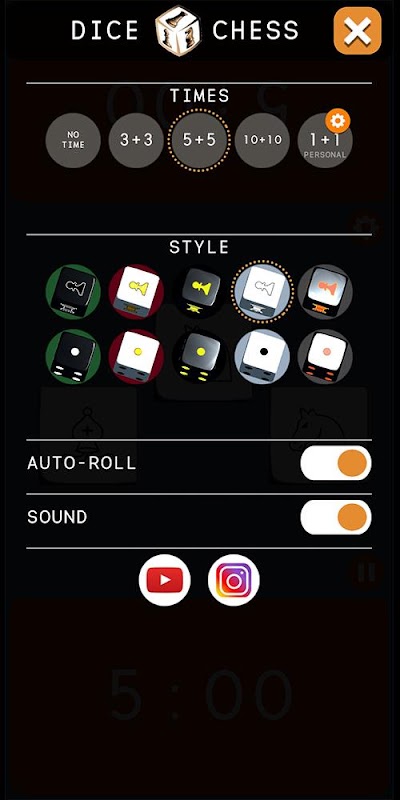 國際象棋骰子。不同的皮膚和國際象棋時鐘。準備玩