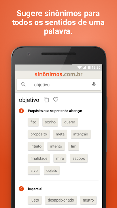 同義詞的最大的在線詞典巴西現在已經成為一個非常完整的應用程序和易於使用。隨著新的應用程序http://www.sinonimos.com.br,你可以看到免費的,你希望所有的字典信息,當你想要的。