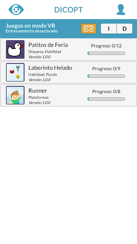 Los ejercicios de DICOPT tienen el aspecto de minijuegos con los que pondrás a prueba tu visión binocular. Además, los juegos están disponibles en 2D para móvil, con los que podrás divertirte, ya que en estos modos no sirven como terapia.